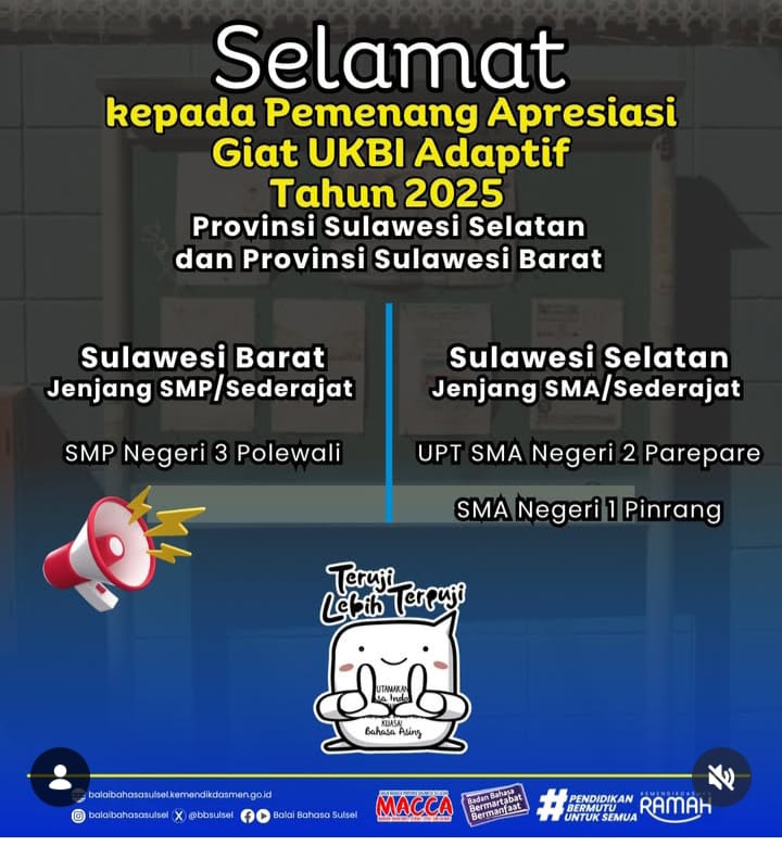 Keberhasilan dua sekolah di Sulsel itu mendapat apresiasi dari Balai Bahasa Sulawesi Selatan.
