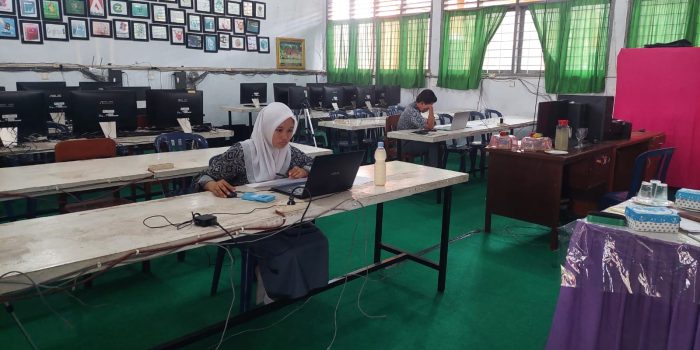 Dua siswa SMAN 2 Wajo, Muh. Ridhowan dan Nurul Adzkia, mengikuti ujian Semifinal Olimpiade Sains Nasional (OSN) jenjang SMA/MA sederajat tahun 2025 yang digelar secara daring, Kamis (11/9), di Laboratorium Komputer SMAN 2 Wajo.