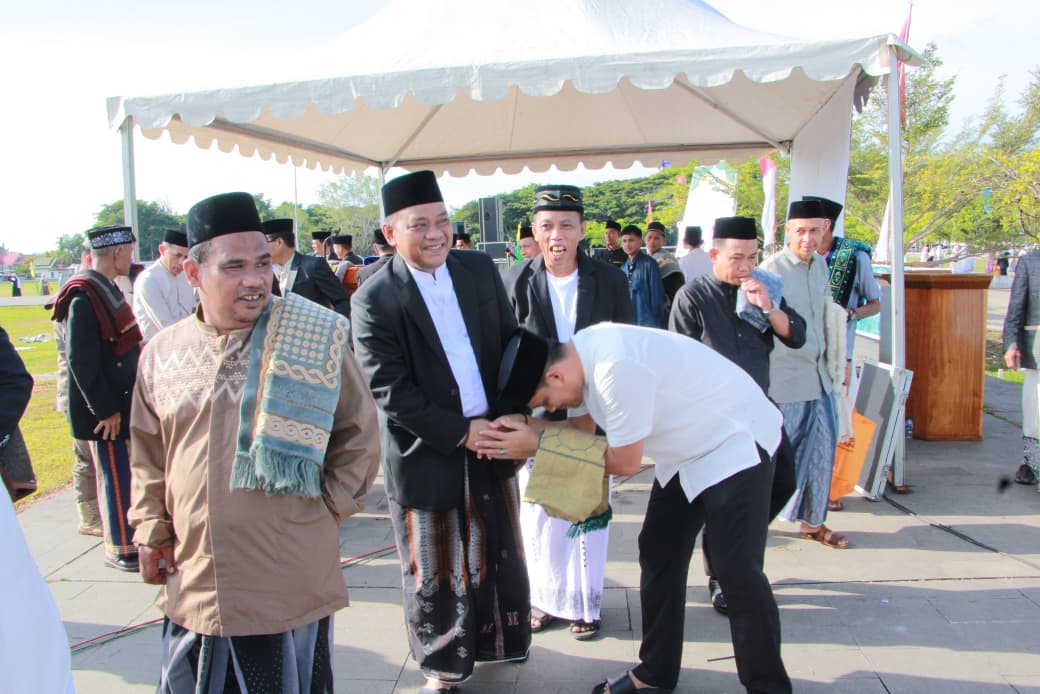 Pelaksanaan Shalat Idul Fitri berlangsung khidmat dan dihadiri ribuan jamaah yang turut hadir unsur Forkopimda, jajaran pemerintah daerah, tokoh agama, dan tokoh masyarakat.