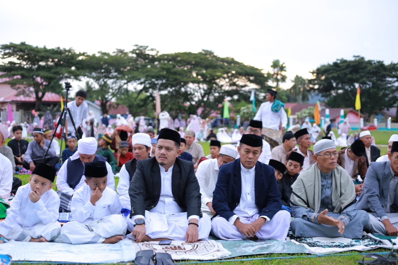 Pelaksanaan Shalat Idul Fitri tersebut berlangsung dengan khidmat dan dihadiri masyarakat serta jajaran pemerintah setempat, tokoh agama, dan tokoh masyarakat.