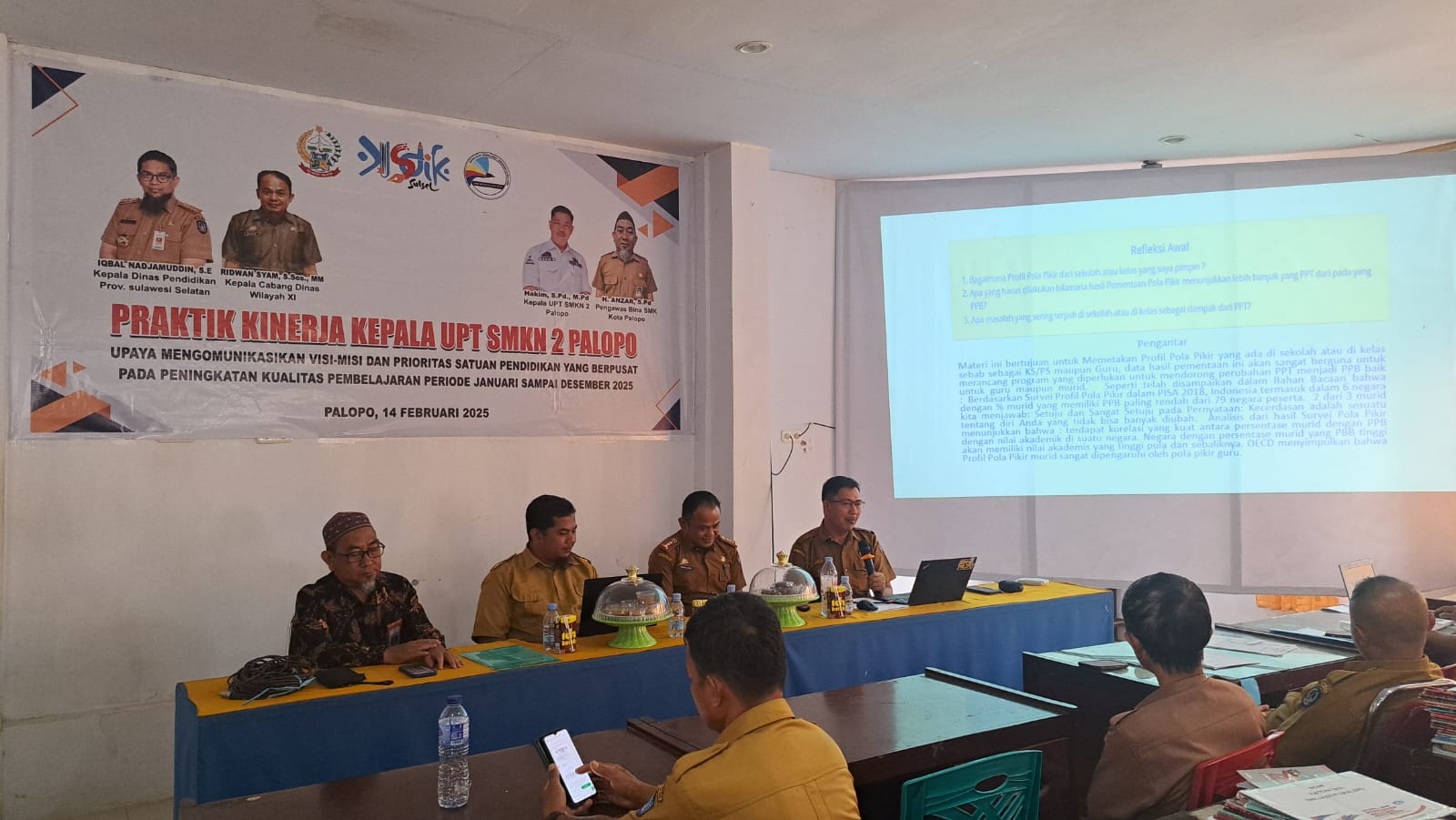 Upaya meng komunikasikan .Visi dan Misi prioritas pendidikan yang berpusat pada peningkatan kwalitas pembelajaran periode Januari – Desember 2025 .SMKN 2 Palopo dihadiri Kepala Cabang Dinas pendidikan Wilayah XI Ridwan Syam.S.Sos.MM, Kepala UPT SMKN 2 Palopo Hakim,.S.Pd,.M.Pd.juga Guru dan Tenaga kependidikan ( Stap ) SMKN 2 Palopo berlangsung di Ruangan Guru, Baru baru ini.
