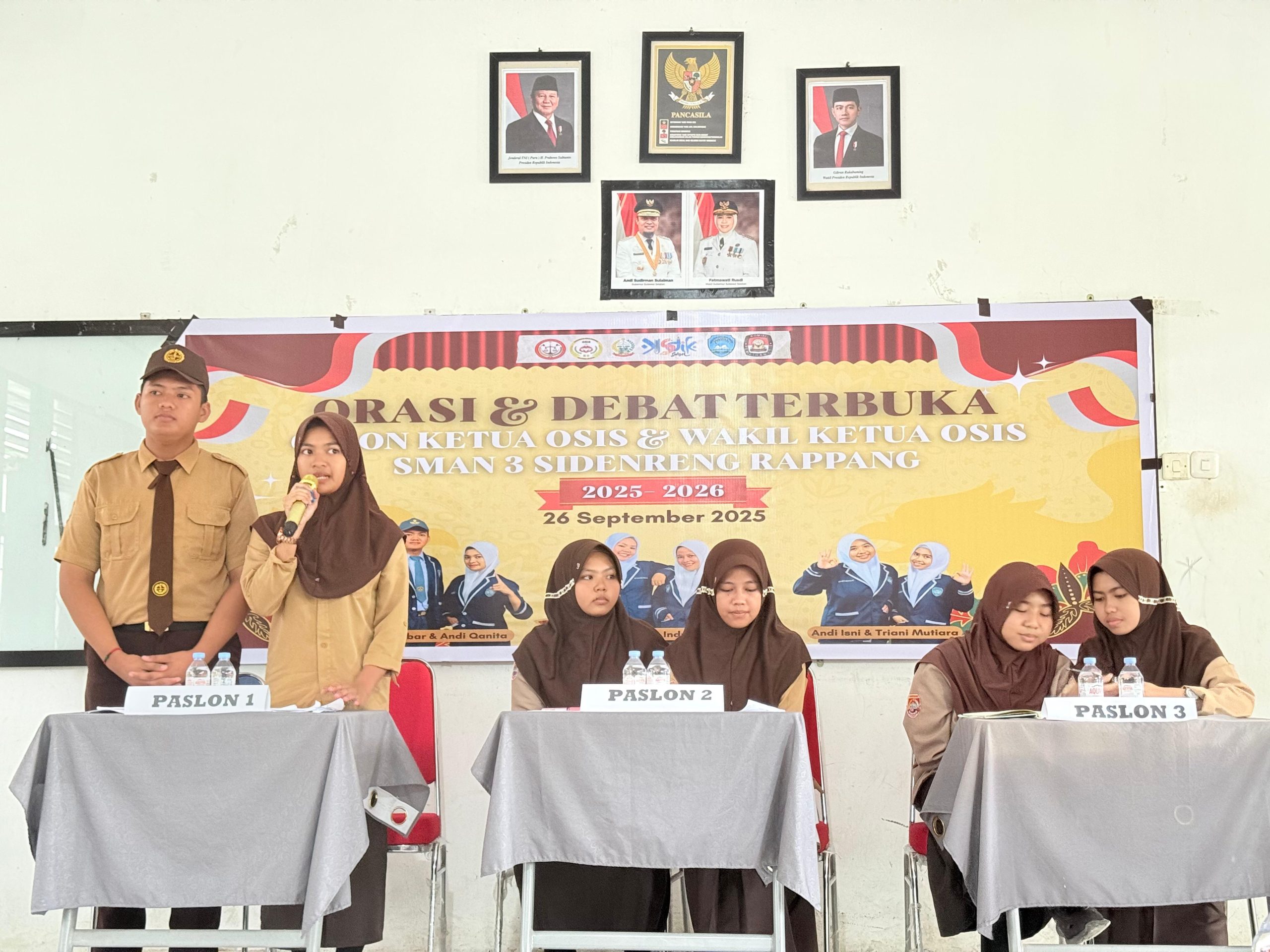 Dengan adanya kegiatan debat ini diharapkan akan lahir pemimpin OSIS yang mampu memberikan perubahan positif serta menjadi teladan untuk seluruh siswa SMAN 3 Sidenreng Rappangaru saja melaksanakan kegiatan Orasi Debat tertutup yang di laksanakan pada hari Jum’at, 26 September 2025 yang berlangsung di Ruangan Lab. Fisika. Kegiatan tersebut merupakan rangkaian kegiatan Kampanye terakhir sebelum memasuki masa tenang selama dua hari yaitu tanggal 27 s/d 28 September 2025.