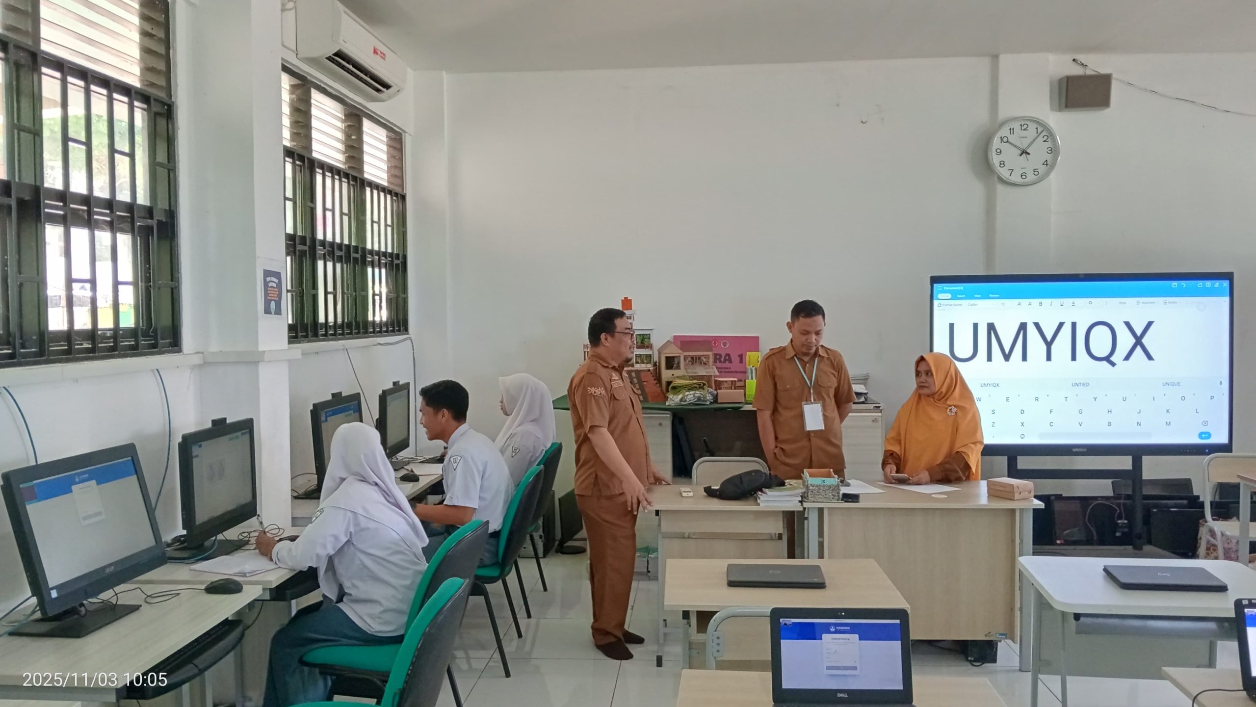 Pada hari pertama, Senin, 3 November 2025, TKA dimulai dengan gelombang pertama yang melibatkan mata pelajaran wajib. Sebanyak 160 murid kelas XII mengikuti ujian ini. Untuk pelaksanaannya, digunakan dua ruang laboratorium komputer.