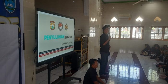 Setelah sambutan oleh Humas selanjutnya pemberian materi secara bergiliran oleh pemateri yang diawali oleh Henra yang mengupas tentang bahaya penyalahgunaan narkoba dengan menjelaskan sumber,cara peredaran,jenis,dampak negatif serta solusi penyalahgunaan narkoba.Selanjutnya dia mengatakan terkhusus bagi kalangan pelajar merokok merupakan pintu masuk dalam penyalahgunaan narkoba olehnya itu dibutuhkan komitmen oleh sekolah untuk siswanya dengan menanda tangani surat pernyataan bersama orangtuanya terkait larangan siswa merokok terutama dilingkungan sekolah.Sementara untuk warga masyarakat secara umum diminta partisipasinya dengan pro aktif melaporkan temuan kasus kejahatan penyalahgunaan narkoba serta perlunya menciptakan kampung bebas narkoba.