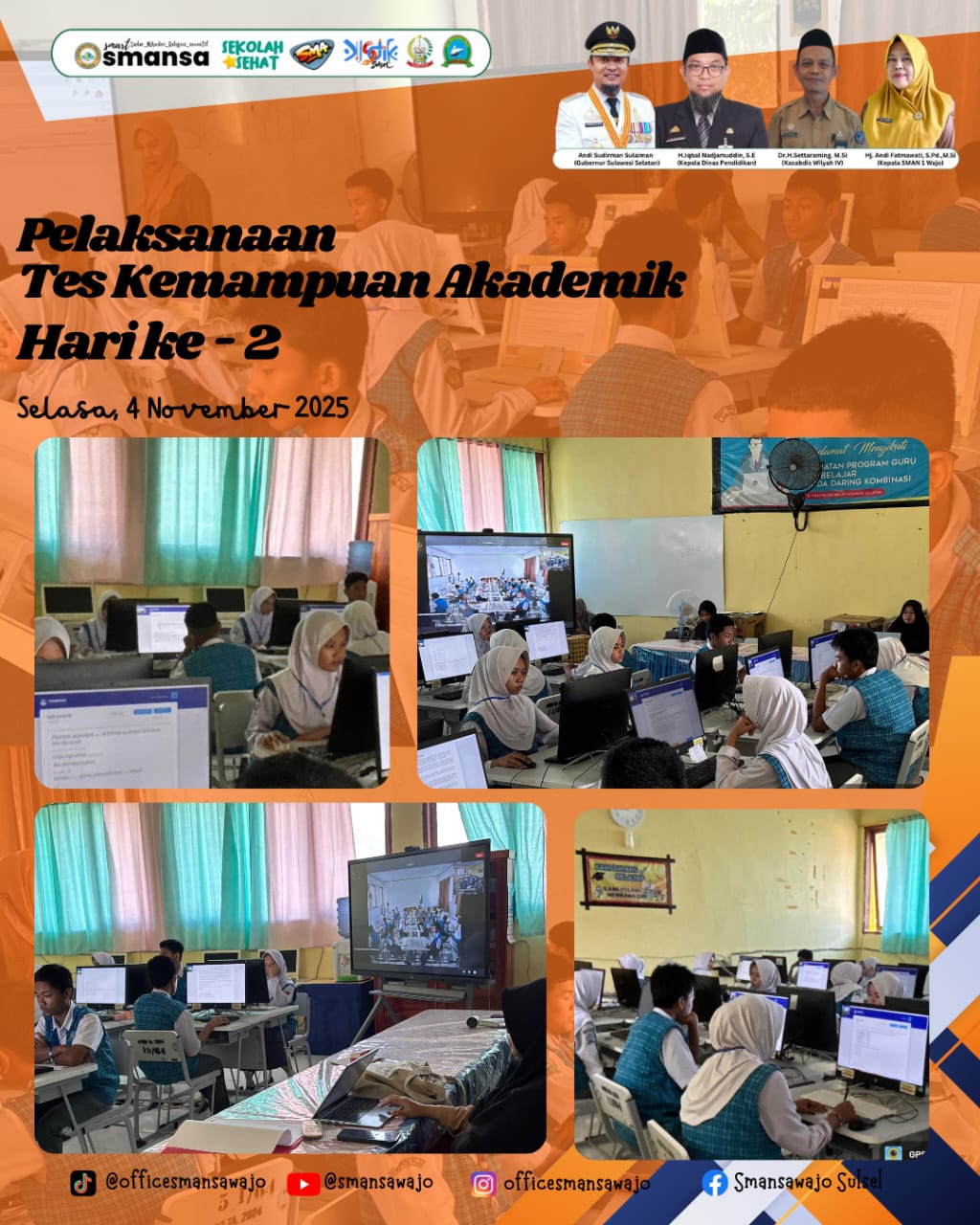 Kompetensi Akademik (TKA) di UPT SMAN 1 Wajo dipantau langsung oleh tim dari Dinas Pendidikan Provinsi Sulawesi Selatan. Kegiatan ini bertujuan untuk memastikan bahwa pelaksanaan TKA berjalan dengan lancar, transparan, dan akuntabel.