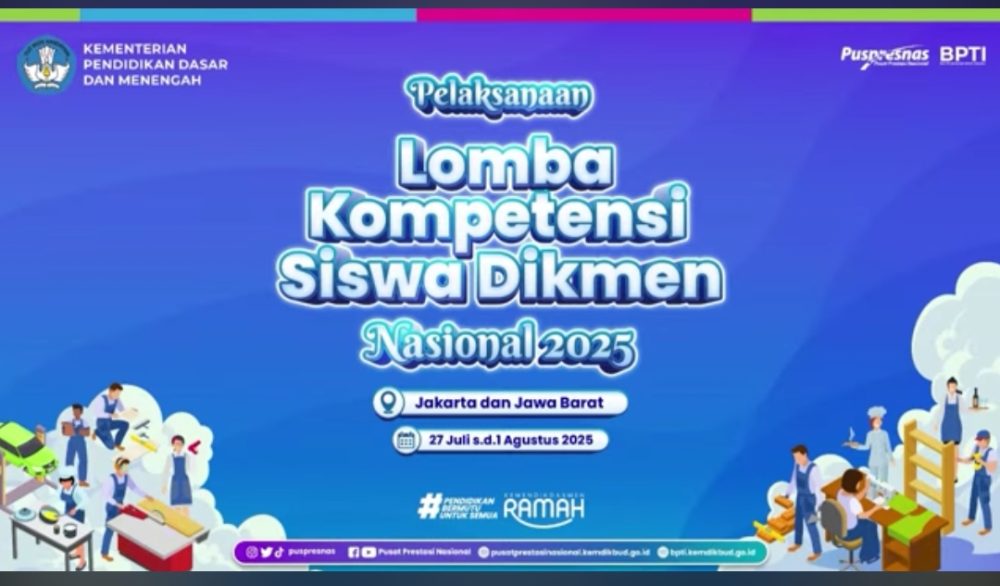 Kementerian Pendidikan, Kebudayaan, Riset, dan Teknologi melalui Pusat Prestasi Nasional resmi meluncurkan Ajang Talenta Tingkat Nasional 2025: Lomba Kompetensi Siswa (LKS) Jenjang Pendidikan Menengah pada Senin, 28 Juli 2025, bertempat di BBPPMPV Bisnis dan Pariwisata, Kota Depok. Kegiatan ini disiarkan langsung melalui kanal YouTube resmi Pusat Prestasi Nasional dan telah disaksikan oleh lebih dari 7.000 pemirsa hingga hari ini.