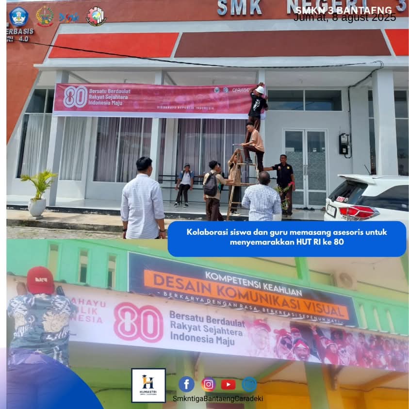 Semangat kebangsaan menyelimuti Sekolah Menengah Kejuruan (SMK) Negeri 3 Bantaeng menjelang peringatan Hari Ulang Tahun (HUT) ke-80 Republik Indonesia. Seluruh warga sekolah, mulai dari siswa hingga guru, bergotong royong memasang spanduk untuk menyemarakkan perayaan kemerdekaan.