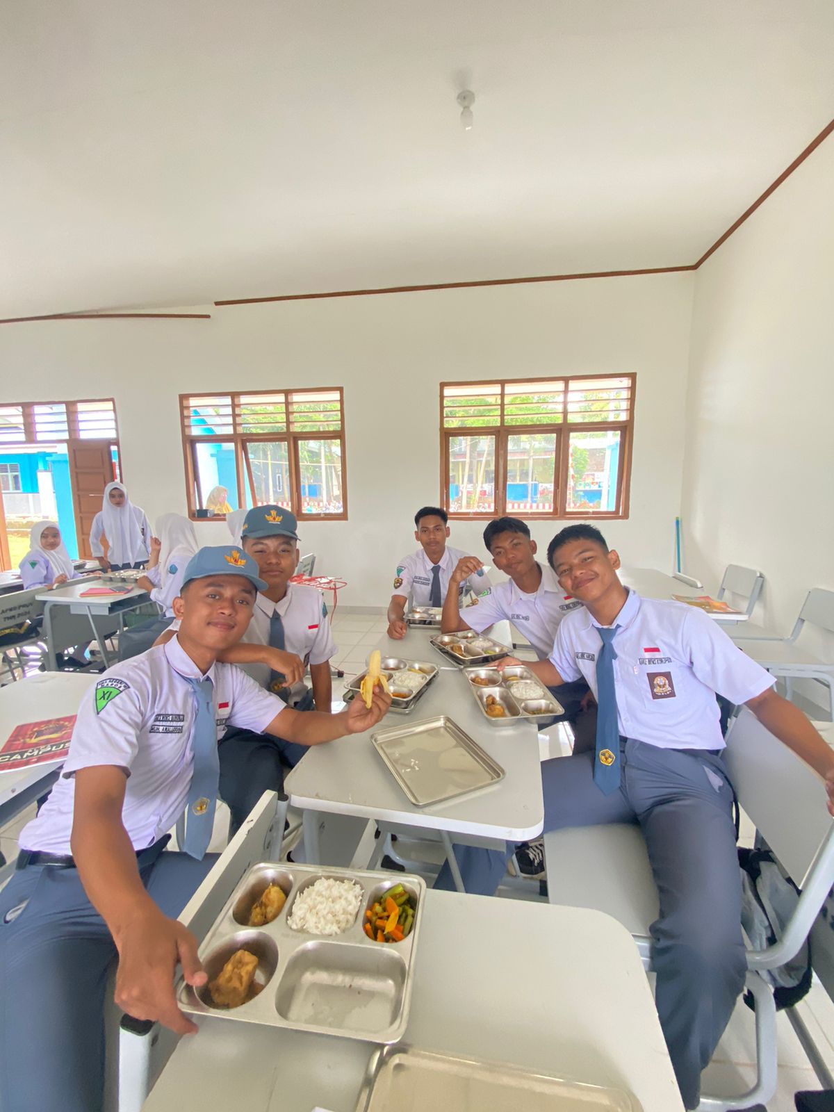 “Sesaat sebelum peserta didik kelas X sampai kelas XII menikmati makanannya, baik sebelum dan setelah makan, jangan lupa mencuci tangan dengan bersih, dan doa bersama sebelum memulai santap makan siang”, pesan kepala satuan pendidikan, Dr.Hj. Rosdiana, S.Pd.,M.Si.