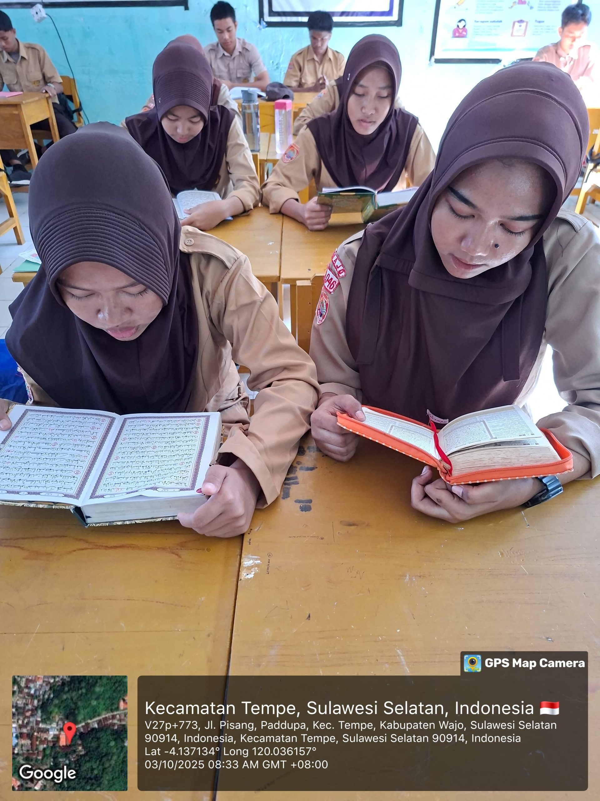 UPT SMA Negeri 1 Wajo memulai pembelajaran setiap hari dengan kegiatan literasi Al-Qur’an. Kegiatan ini diikuti oleh seluruh siswa dan guru di sekolah.