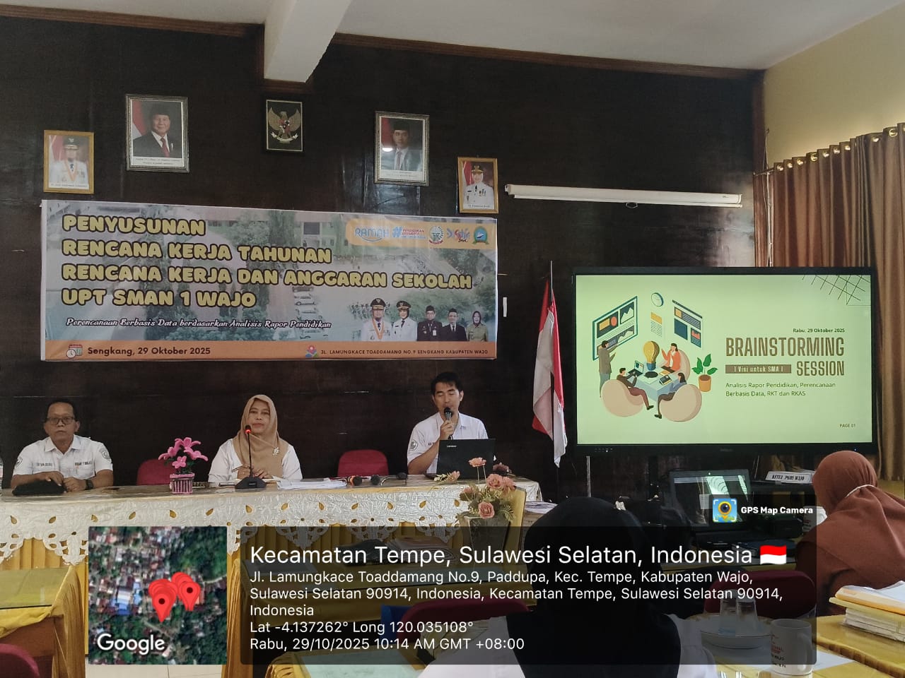 UPT SMAN 1 Wajo baru-baru ini mengadakan Brainstorming Session yang dihadiri oleh para pendidik dan tenaga kependidikan untuk membahas Perencanaan Berbasis Data, Penyusunan Rencana Kerja Tahunan (RKT), dan Rencana Kerja dan Anggaran Sekolah (RKAS).