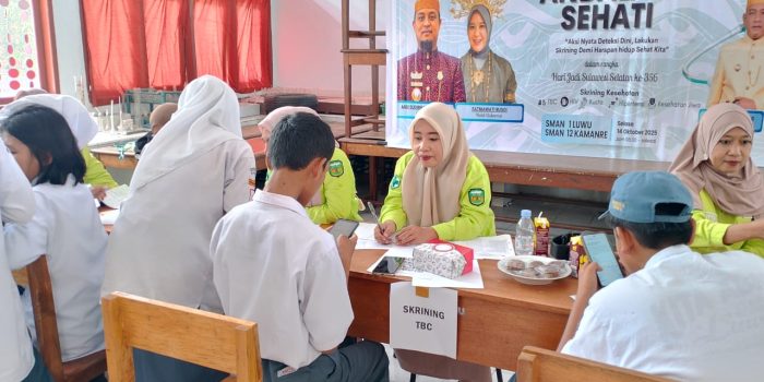 Kegiatan Screening Kesehatan terkait Program Prioritas Gubernur dalam rangka hari jadi Provinsi Sulawesi Selatan ke-356 di UPT SMAN 12 Luwu Kamanre dilaksanakan satu di dua tempat Yaitu SMAN 1 dan SMAN 12 Luwu Senin,13 .