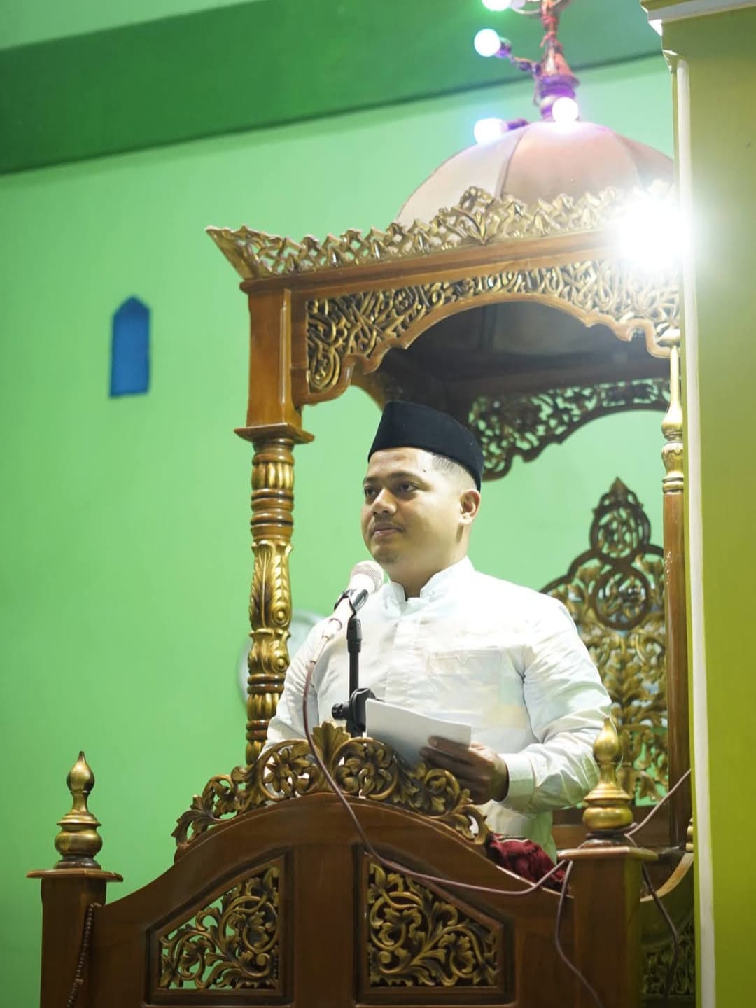 Wakil Bupati Luwu, Muh. Dhevy Bijak Pawindu, S.H., membawakan sambutan Bupati Luwu pada malam pertama Ramadan 1447 Hijriah/2026 Masehi di Masjid Al-Mawasir, Desa Batusitanduk, Kecamatan Walenrang.